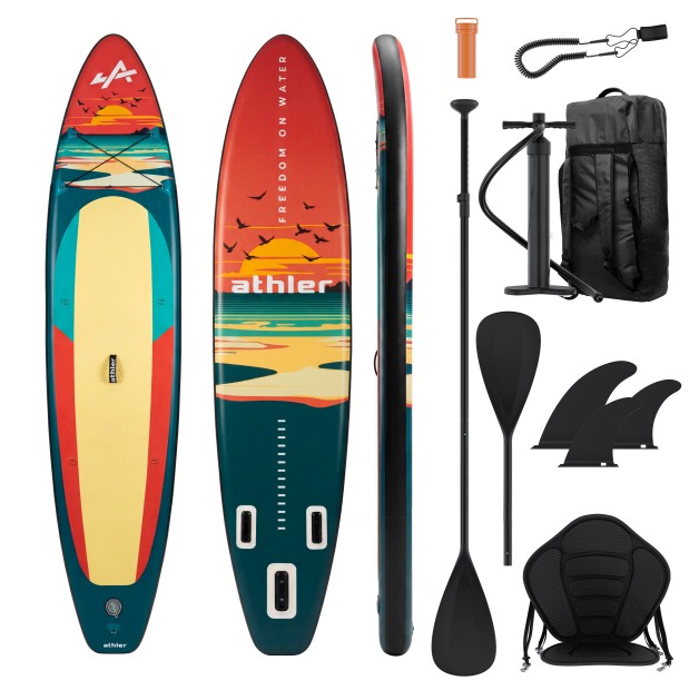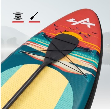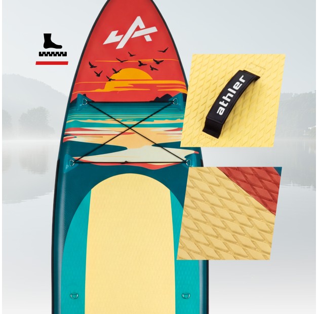 Deskę dmuchana SUP Athler wyróżnia oryginalny, autorski design, który przyciąga wzrok swoją kreatywnością. Wyraziste kolory i dynamiczne linie sprawiają, że deska nie tylko świetnie nadaje się do pływania, ale również jest sposobem wyrażenia indywidualnego stylu i osobowości.