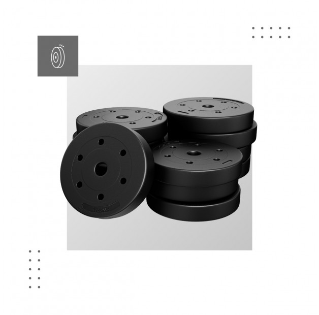 - Dzięki odpowiednio dopasowanej do gryfu średnicy talerzy, zmiana obciążenia jest niezwykle łatwa.
