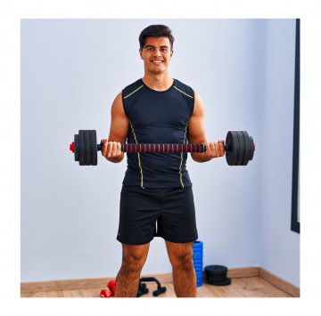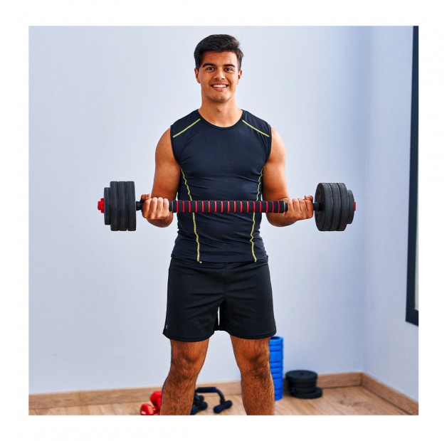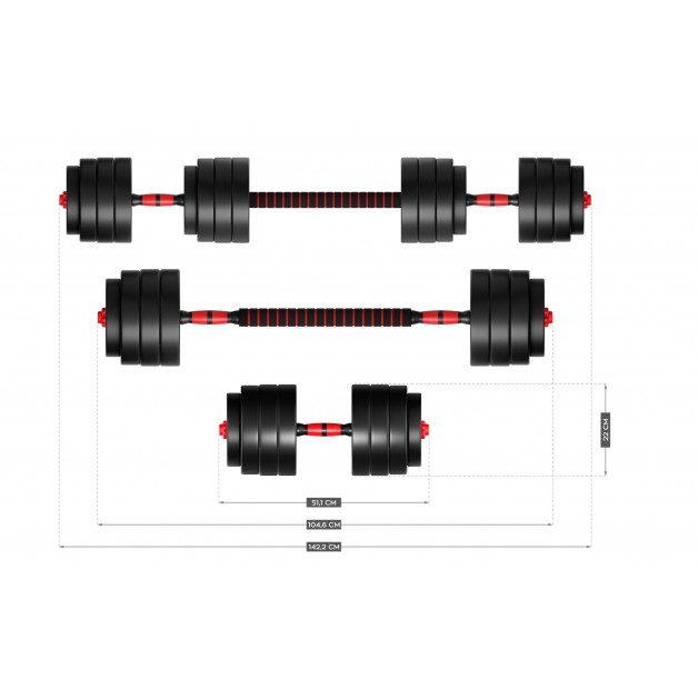 - Dwa zestawy kompozytowych hantli z łącznikiem dają możliwość rozmieszczenia obciążeń na dwa różne sposoby – z szerszym i węższym chwytem. Dzięki temu bez problemu wykonasz ćwiczenia na wszystkie partie ciała.