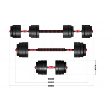 - Zestaw hantli bitumicznych i sztanga w jednym produkcie