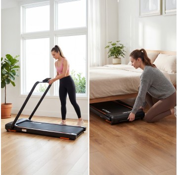 - Bieżnia składana – tylko 13 cm po złożeniu, idealna pod łóżko