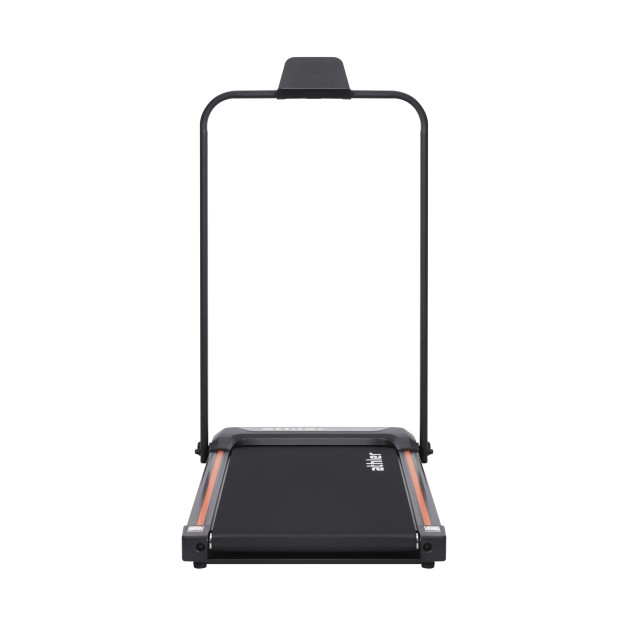 - Niewielkie wymiary – po złożeniu ma jedynie 13 cm wysokości, co pozwala przechować ją nawet pod łóżkiem. Idealna jako mała bieżnia domowa.